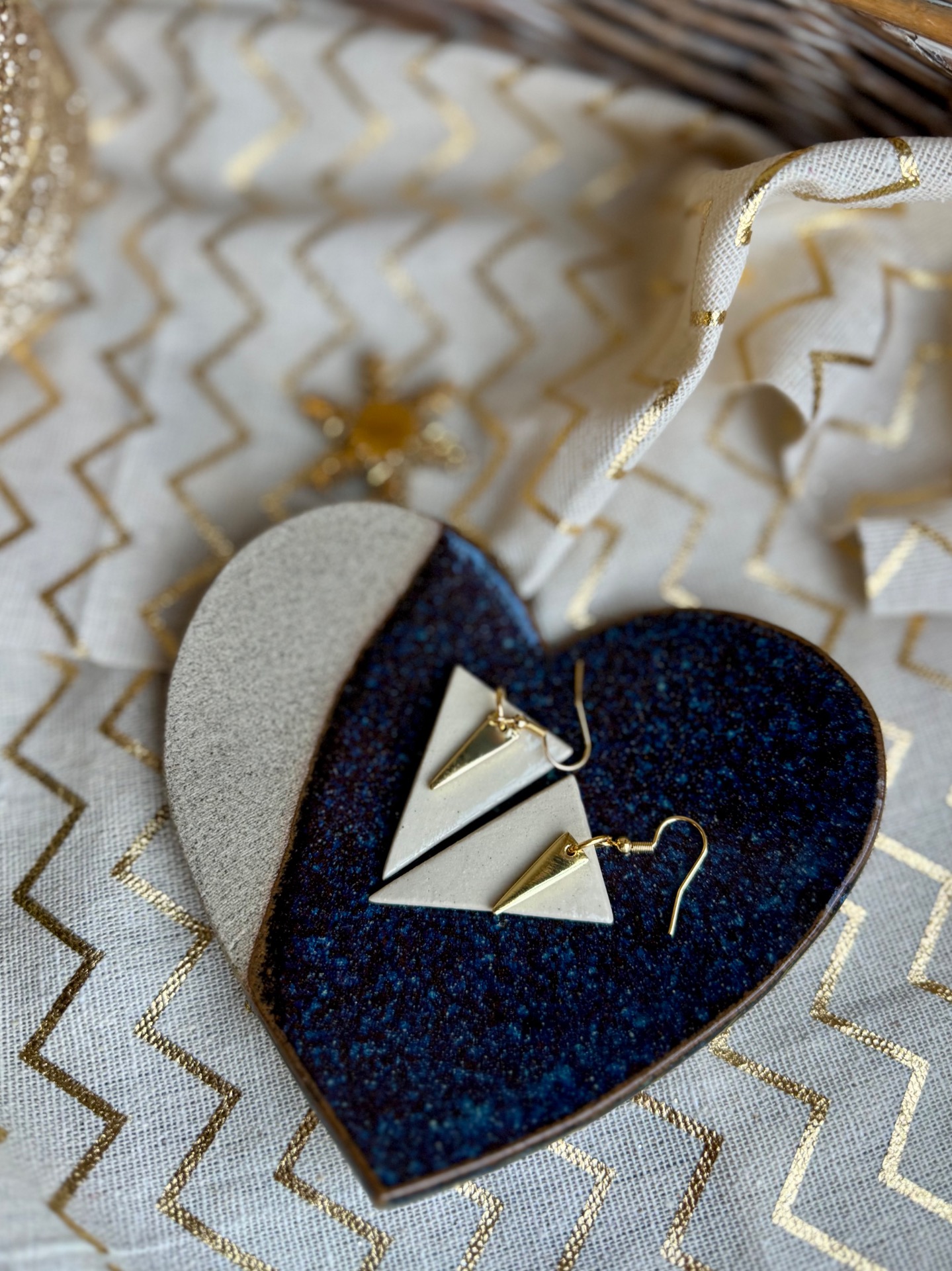 Coupelle à sauce rose/vert/beige et OR
