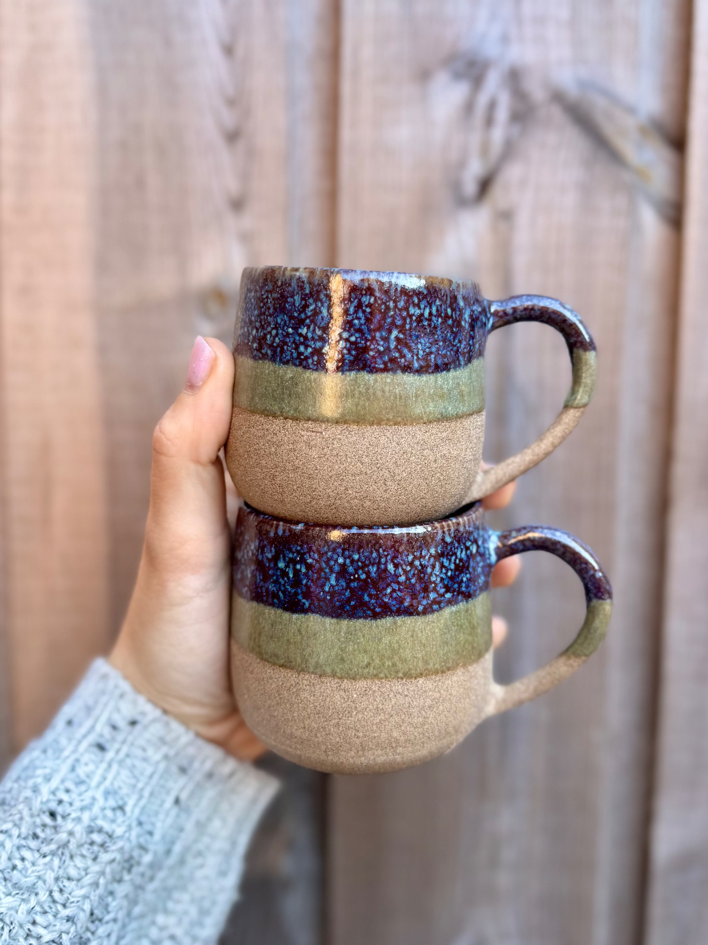 Tasse bi colores bleu et verte avec anse