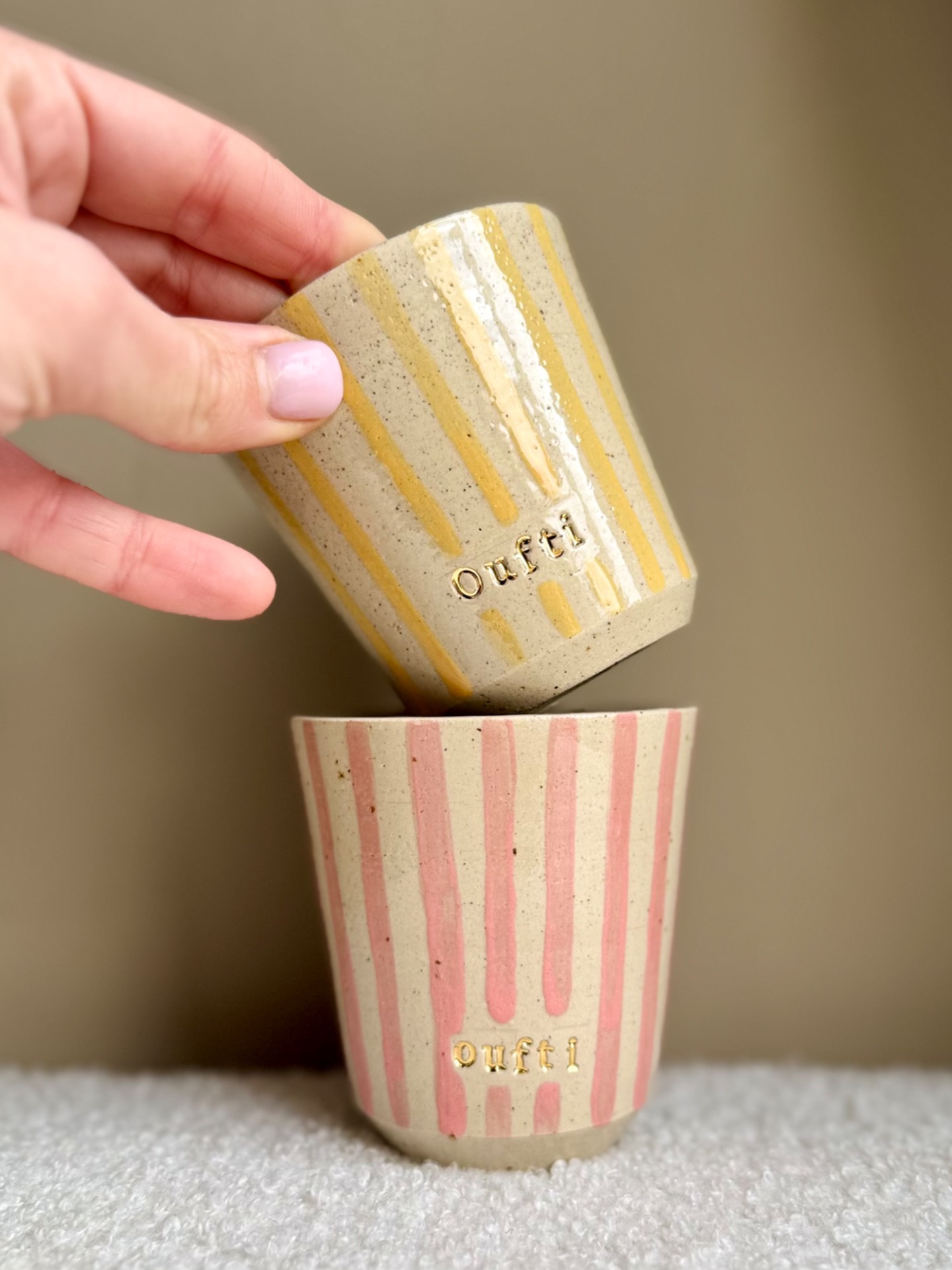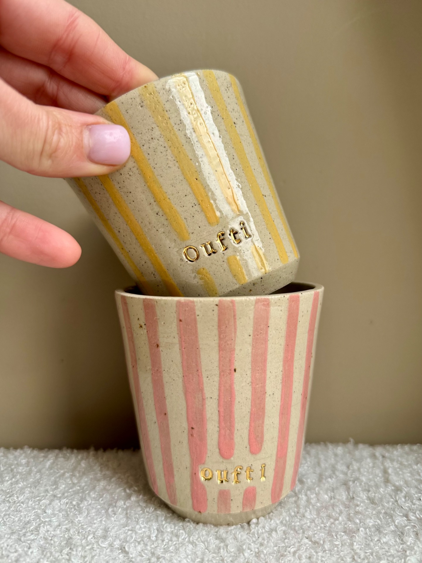 Gobelet Oufti ligne rose et or.Capacité : 200/250 mL 3 « oufti »