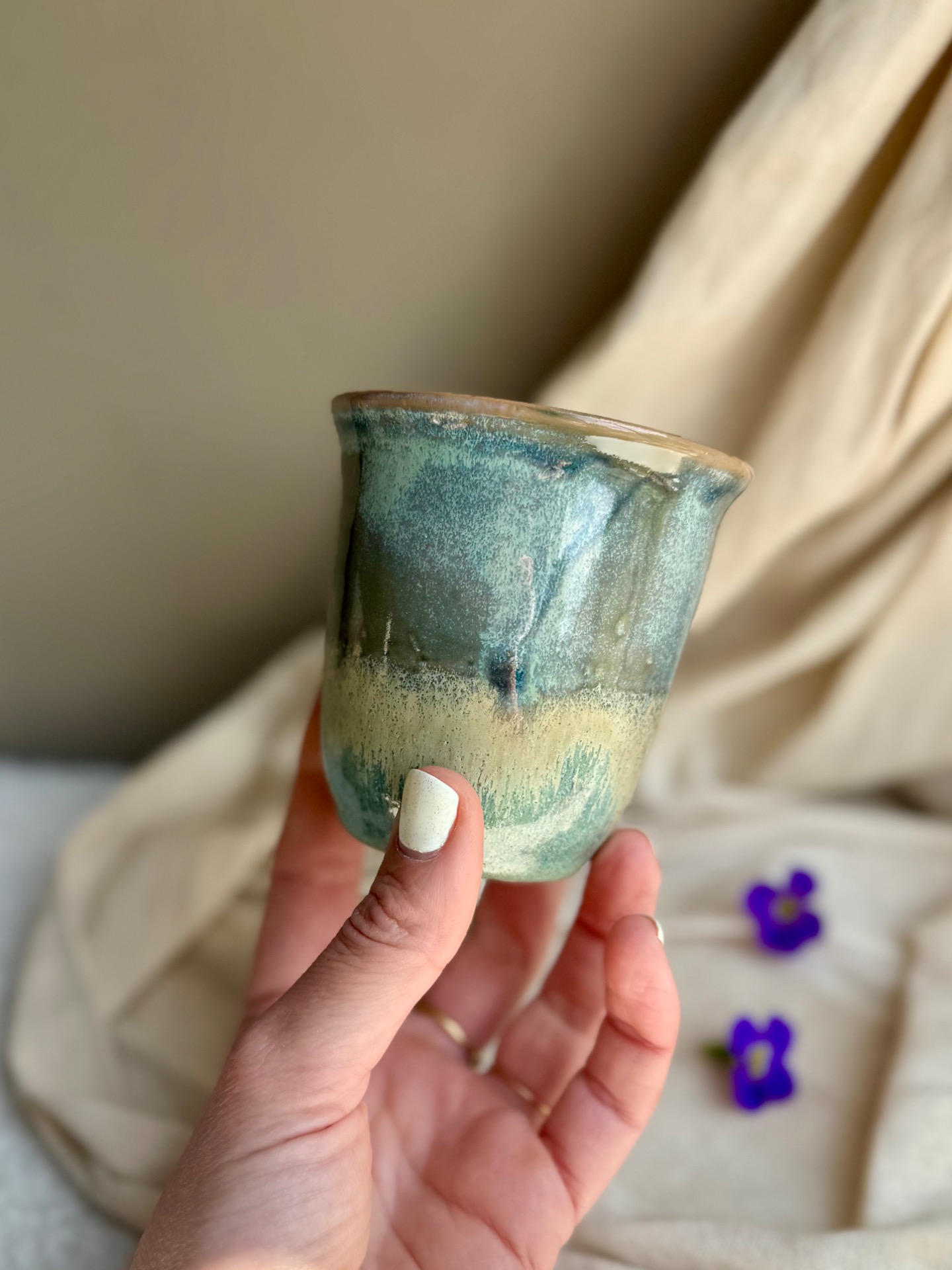 Gobelet emaillage bleu/vertCapacité : 200/250 mL