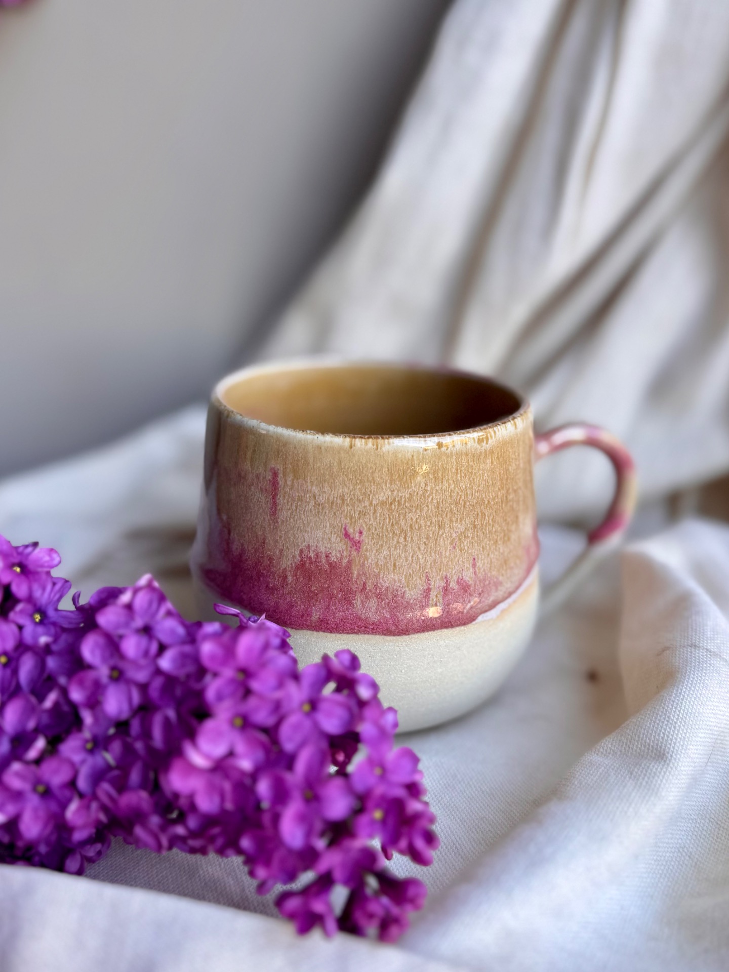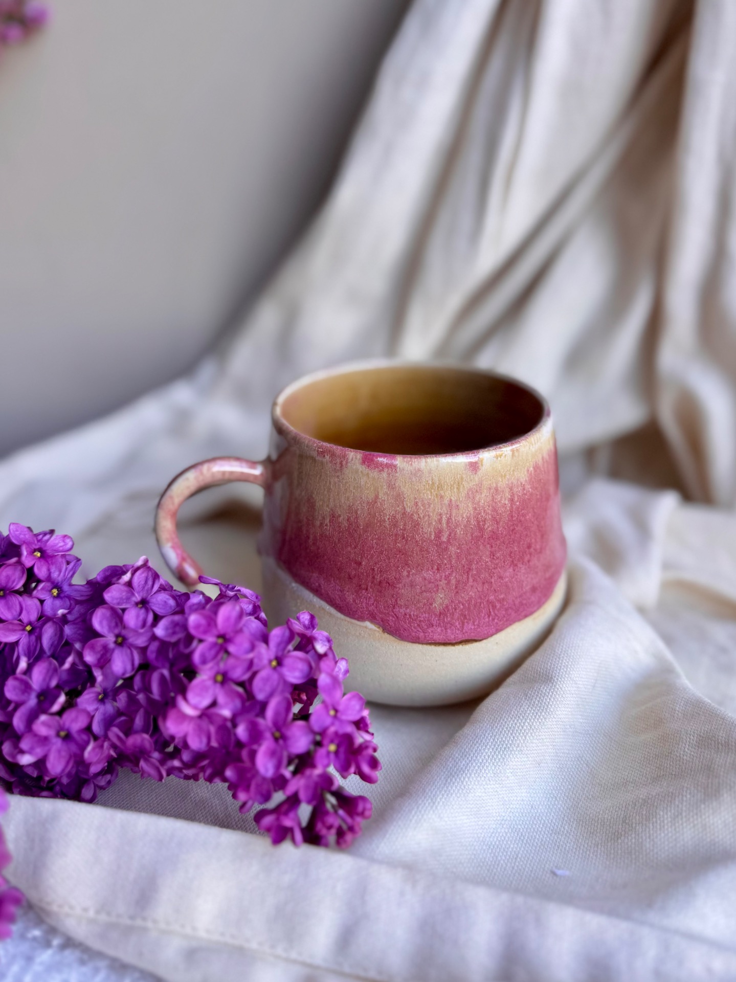Maxi rose et brune en terre blanche apparente. Capacité : 500mlDimension : 10/10 cm