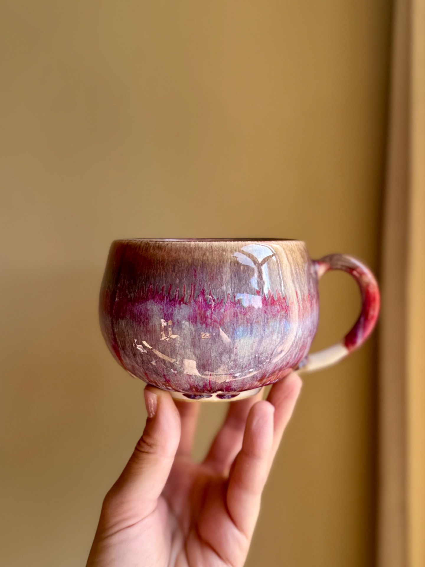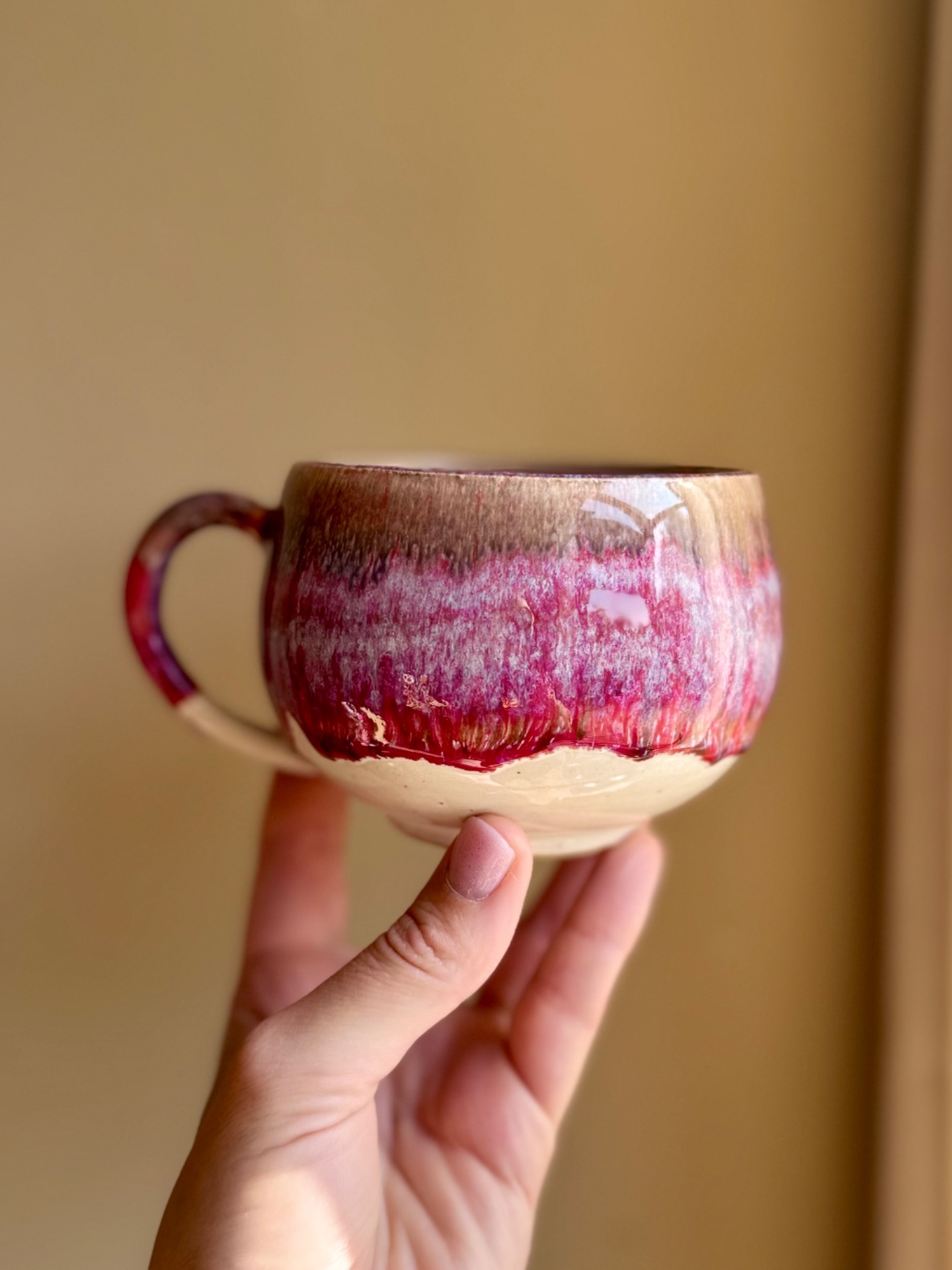 Mug beige vert et reflets roses