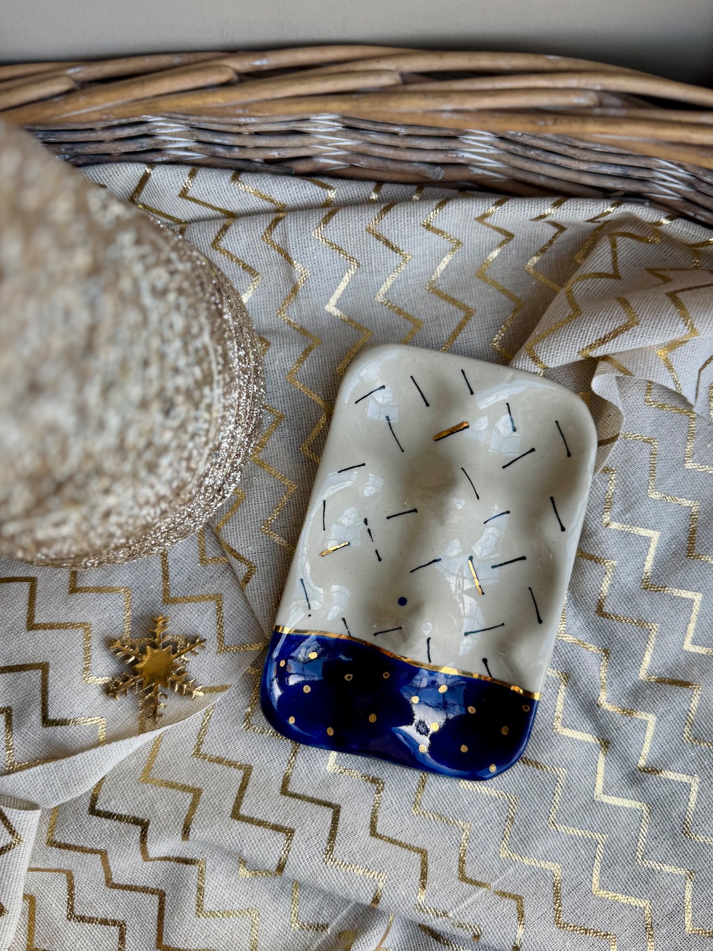 porte oeufs 6 pieces bleu et or