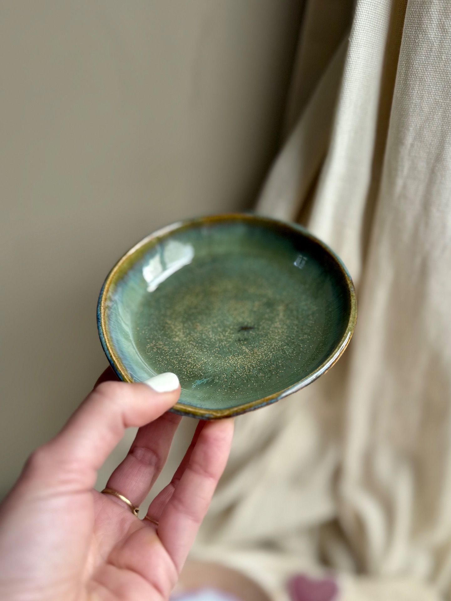 Repose cuillère vert.Diametre : +/- 10 cm.