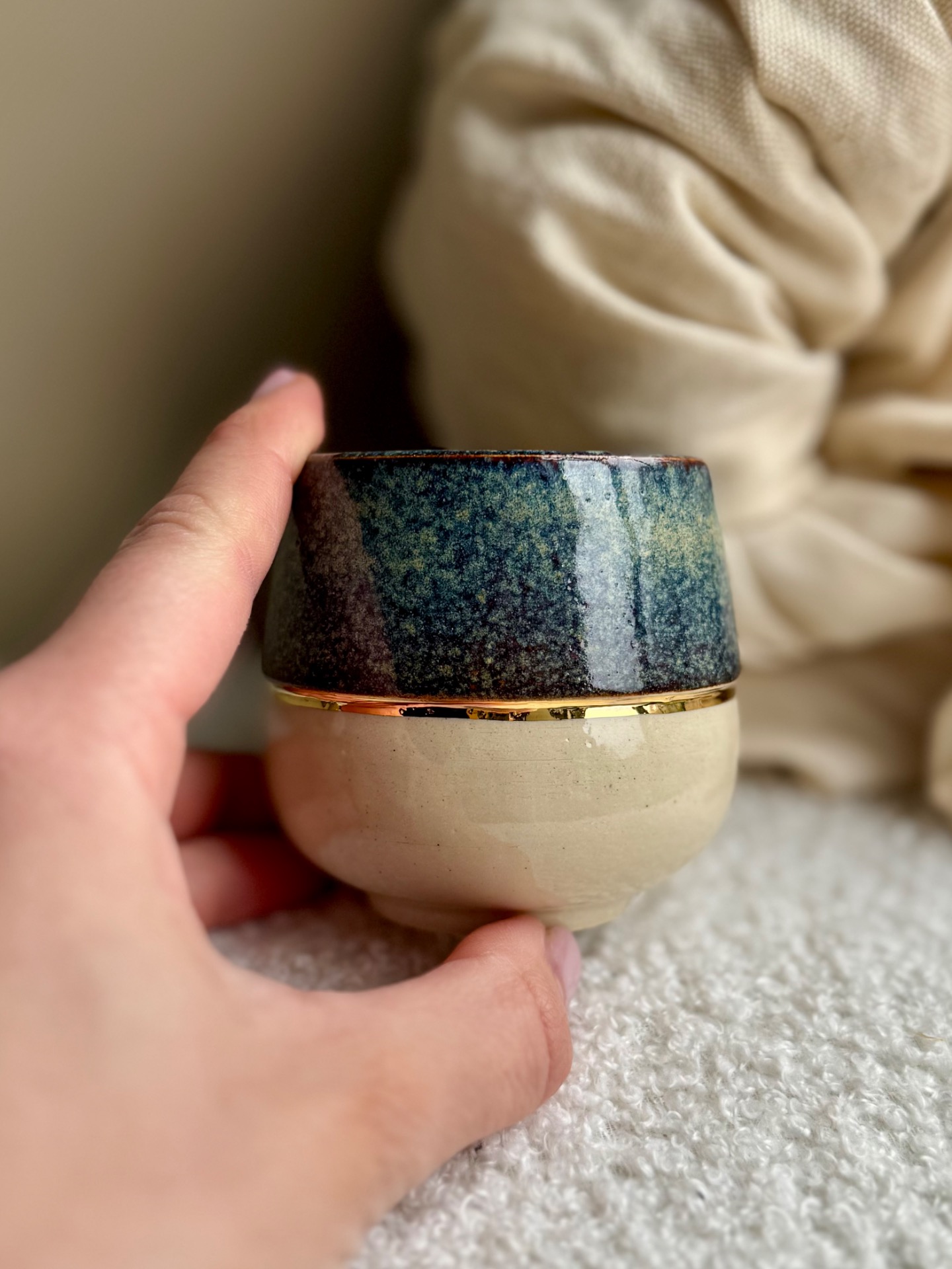 Saturne bleue et or. émaillage transparent sur le dessous.Capacité : 180 mlTaille: 7 cm/7