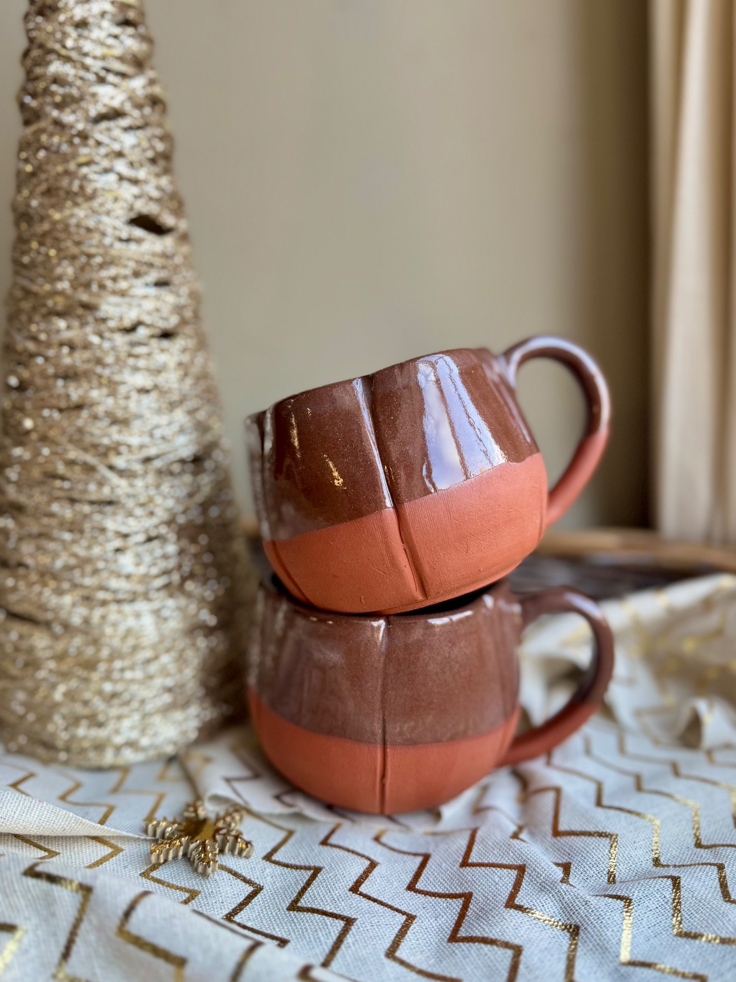 Mug XL citrouille terre rouge émail transparent.Capacité : +/- 250 mL